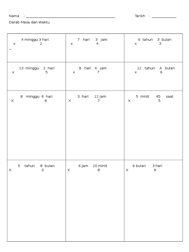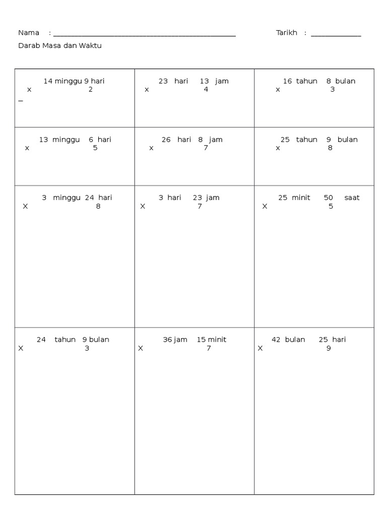 Ejercicio De Tambah Dan Tolak Masa Dan Waktu Tahun 4
